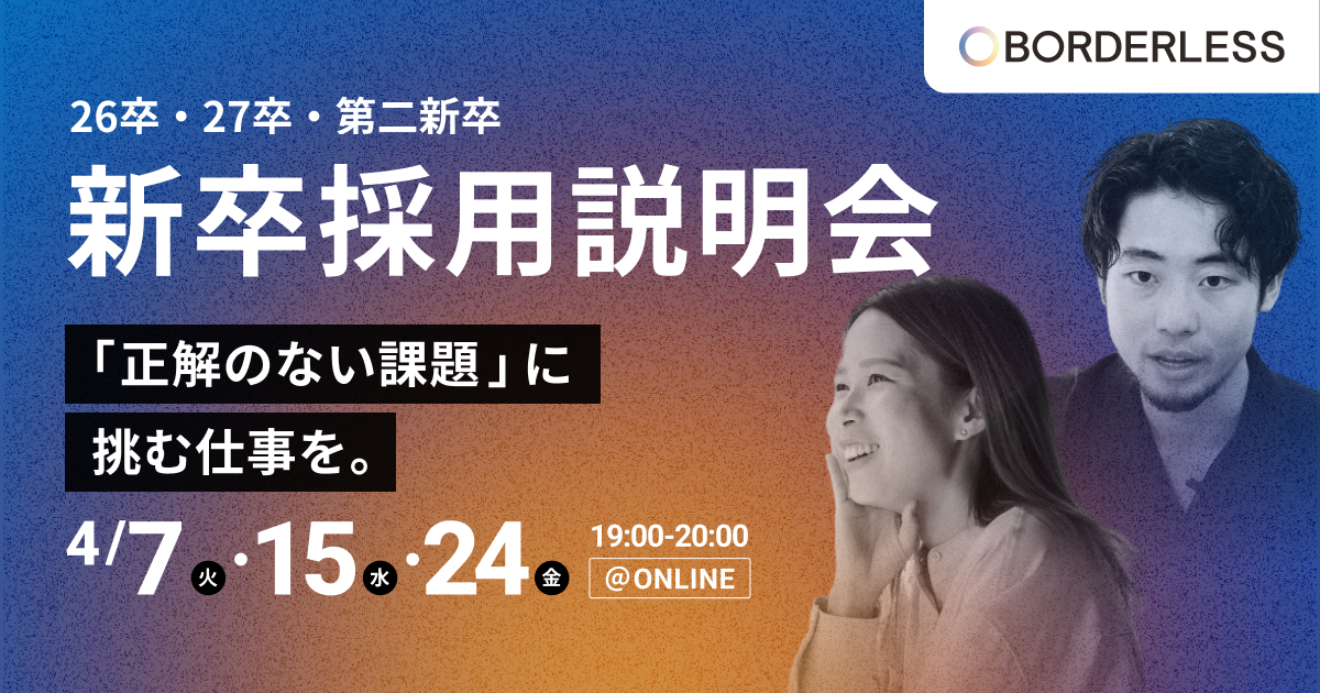 4/24(金)19:00-【27卒】ボーダレス・ジャパン会社説明会|社会課題にビジネスで挑む|26卒・第二新卒も歓迎!