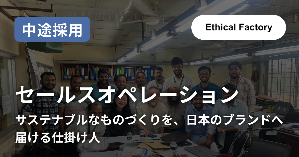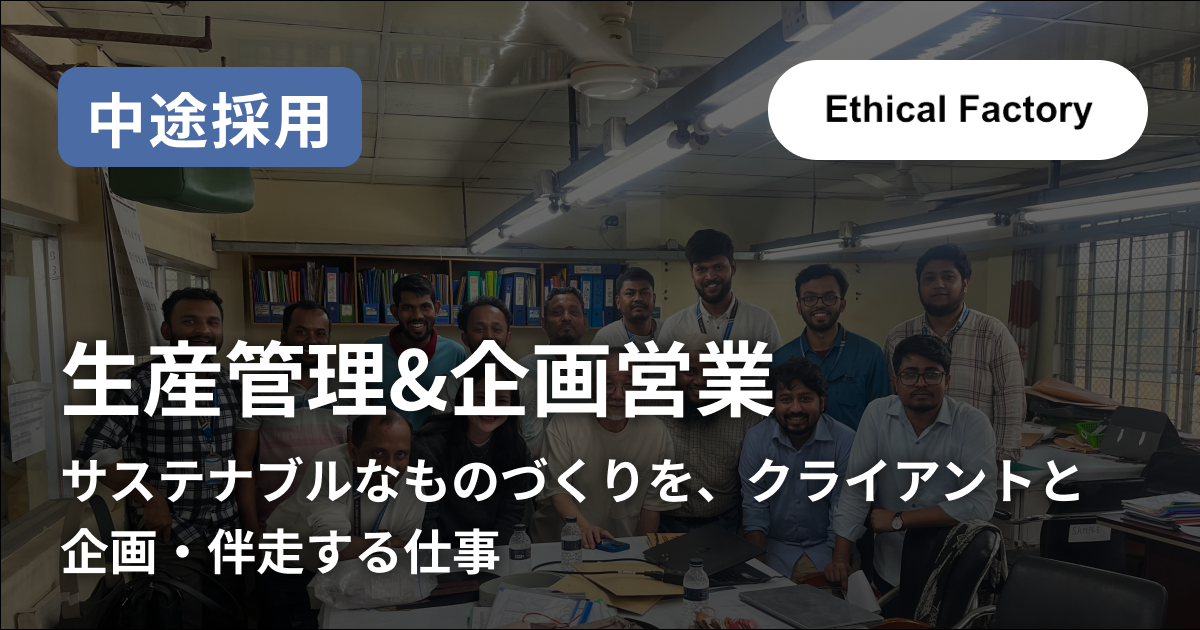 バングラデッシュの自社工場では、企業様のサンプル製作、同じ企画の商品を作り続けるために弛まぬ努力と職人の技術や知恵を駆使して商品を作り続けています。これが作りたい!を形にするために営業担当も現場に入りみんなで作るを大切にしています。そんな私たちと一緒にモノづくりを行う企業様を沢山増やしていきたいと思います。